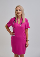 Długa Sukienka Medyczna Taliowana Premium