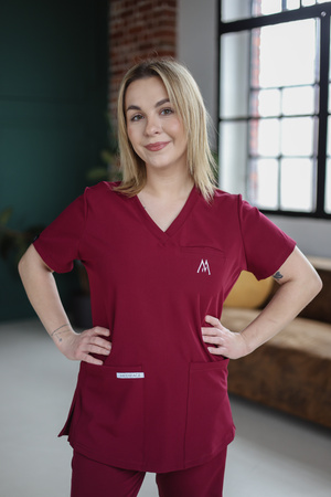 Komplet Medyczny Damski Scrubs Luxe Premium Bordowy Burgund